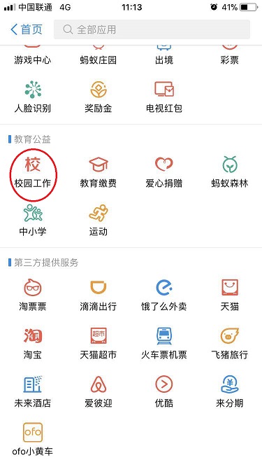 2、 在更多里找到“校园工作”并点击进入(图2)