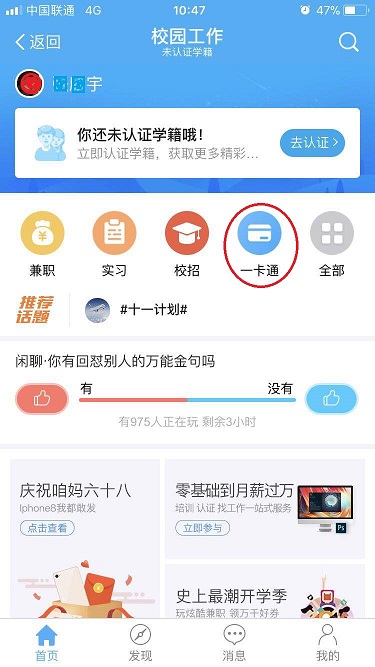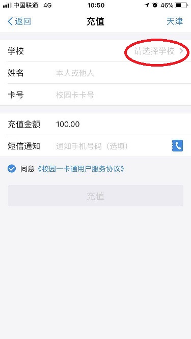 4、 进入“一卡通”,点击“选择学校”(图4)