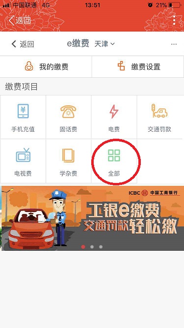 4、在“IC卡、联名卡充值”界面,点击“缴费单位”(图4):