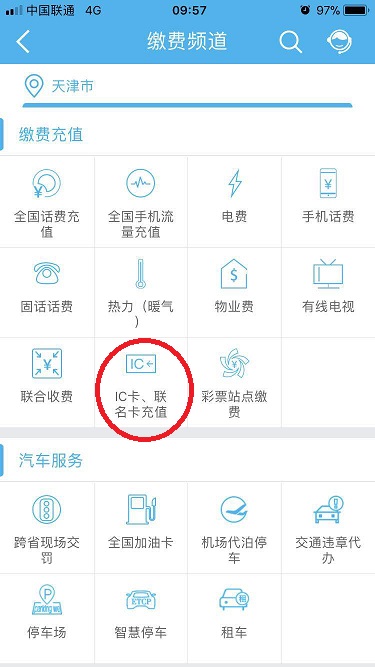 3、在“缴费频道”页面,点击“IC卡、联名卡充值”(图3):